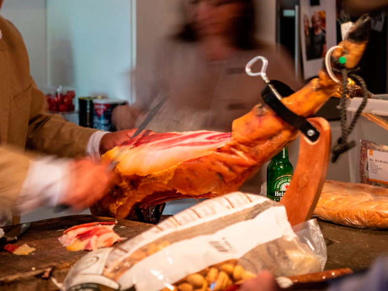 En este caso, si el jamón se va a consumir rápidamente, como en eventos o celebraciones, es preferible empezar por la maza, la parte más carnosa y jugosa del jamón. Esto permite disfrutar de las mejores lonchas desde el principio.